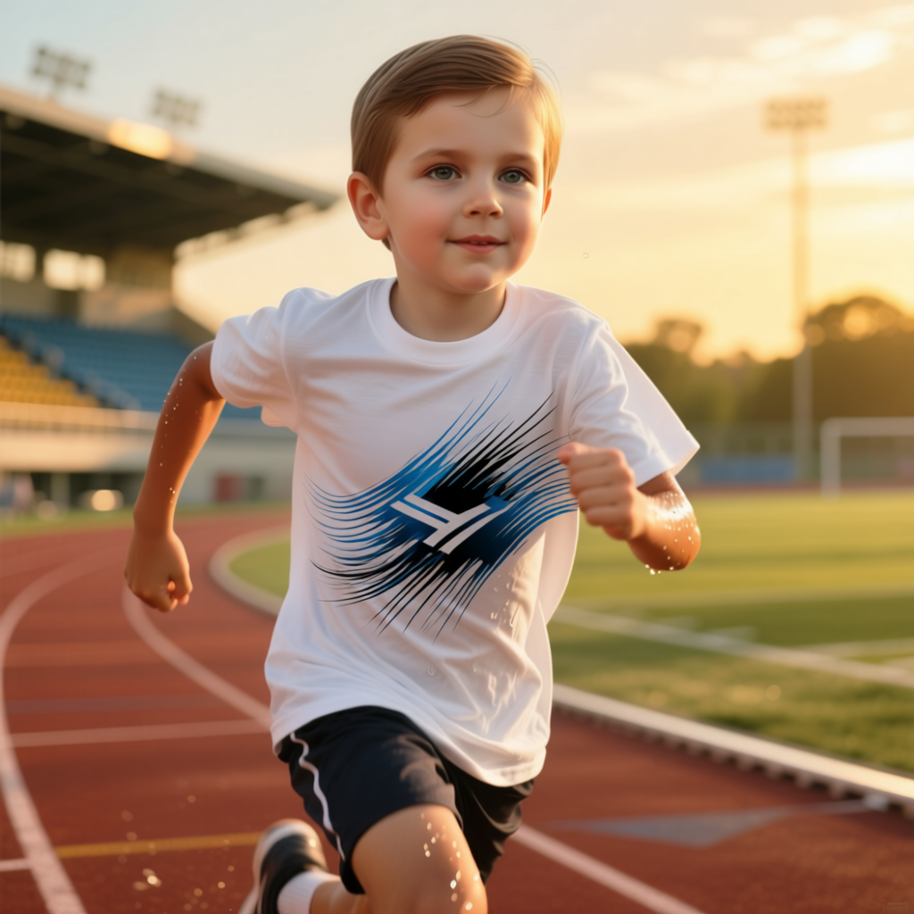 Сохраните яркую спортивную эмоцию вашего ребенка на долгую память! Эта футболка с уникальным принтом превратит лучший кадр с тренировки или соревнований в стильный и трогательный аксессуар.
